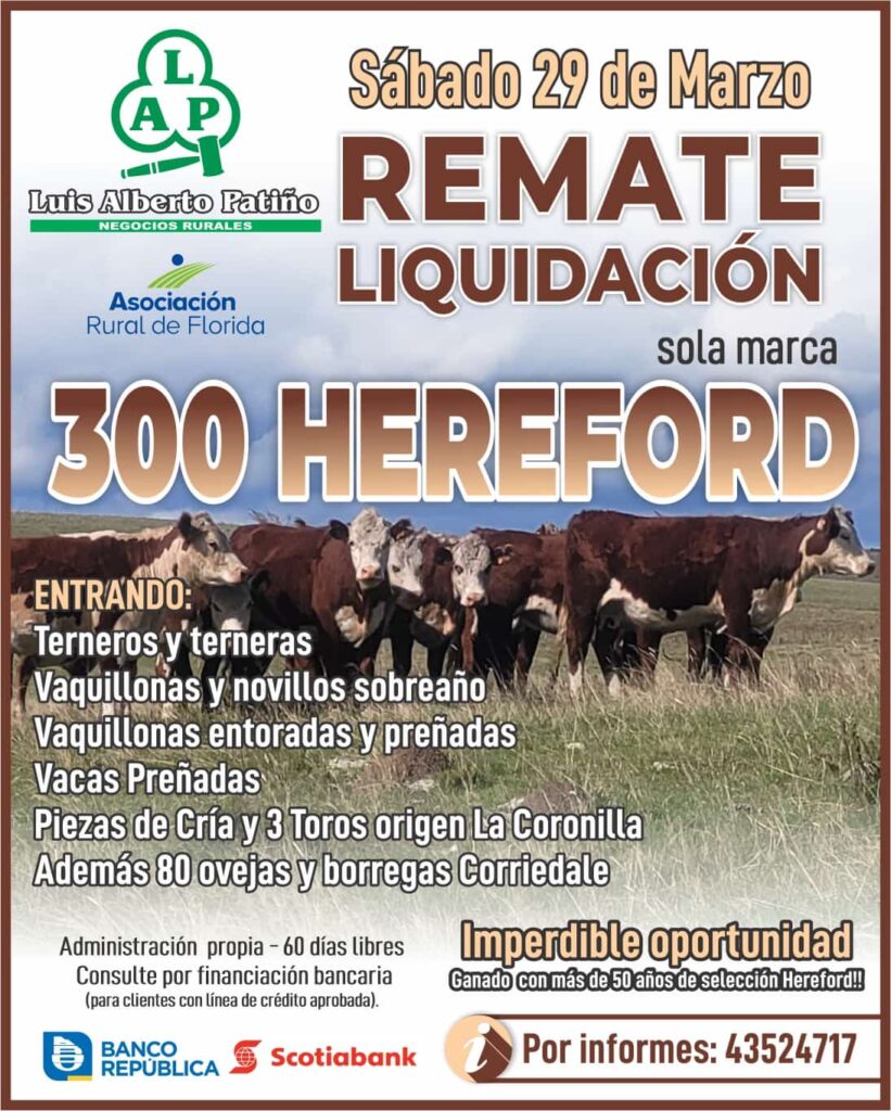 Inicio » Destacado » Enrique Patiño: muy jugoso informe del Mercado de Hacienda junto a la invitación para el próximo sábado 29 de marzo al remate liquidación.
