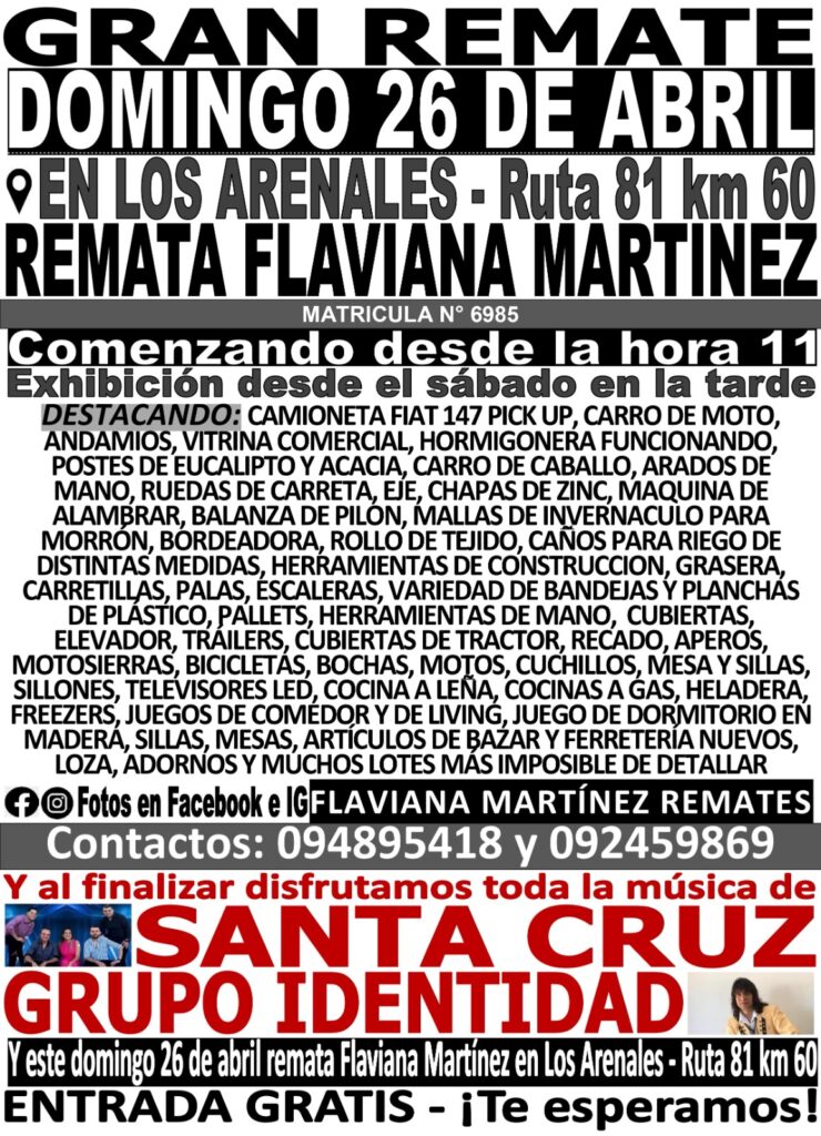 Gabriel Brum: se viene otro gran remate, viernes 24 de abril, buena genética como nos tiene acostumbrado el escritorio Urchitano Negocios Rurales LEER MÁS » 23 abril, 2026