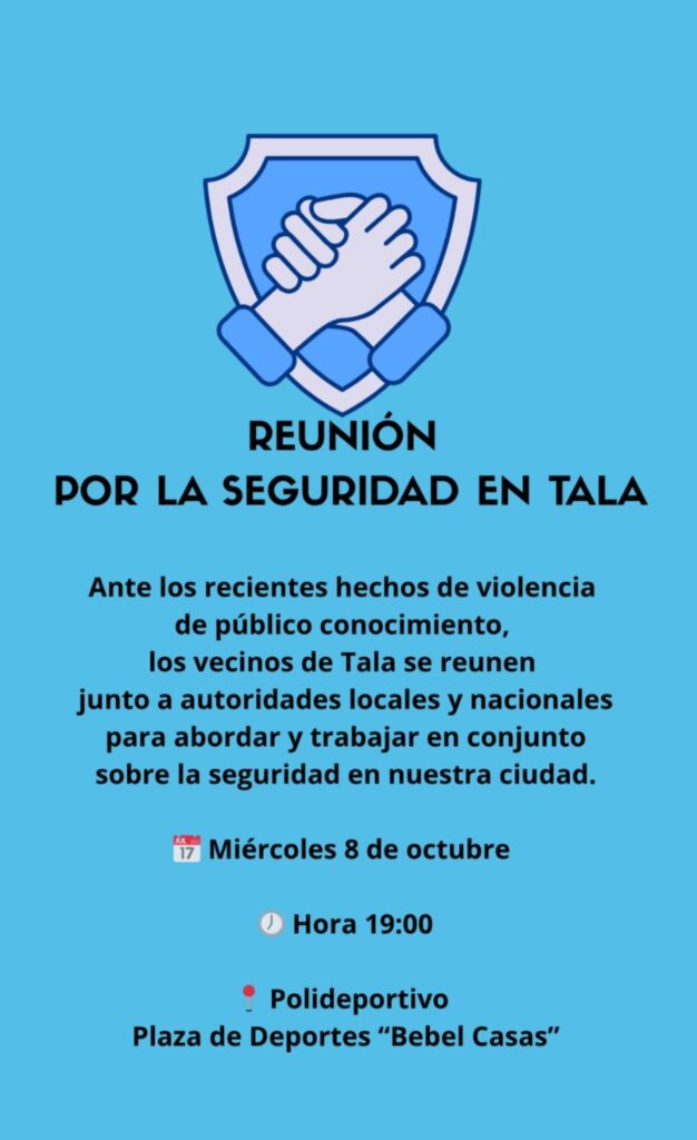 Inicio » Destacado » Henry Cheirasco, Leonardo Pérez: hoy 8 de octubre gran convocatoria por parte de los vecinos a una reunion por tema de seguridad en la ciudad de Tala
