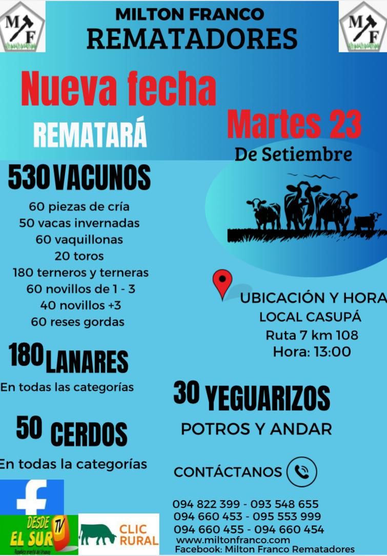 Milton Franco: volvemos a realizar la Feria que tuvimos que suspender el pasado sábado. Invitamos para hoy martes 23 de septiembre al Local Casupá